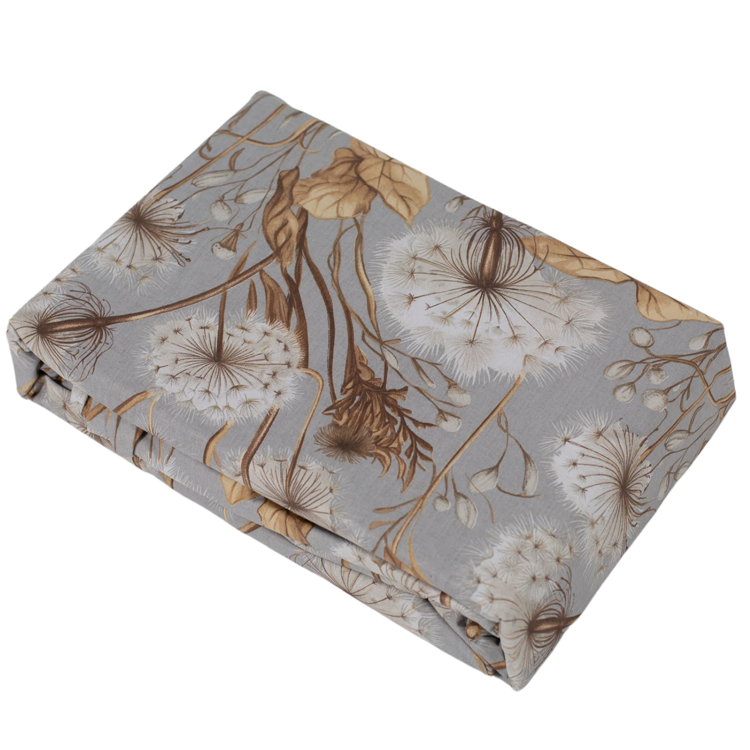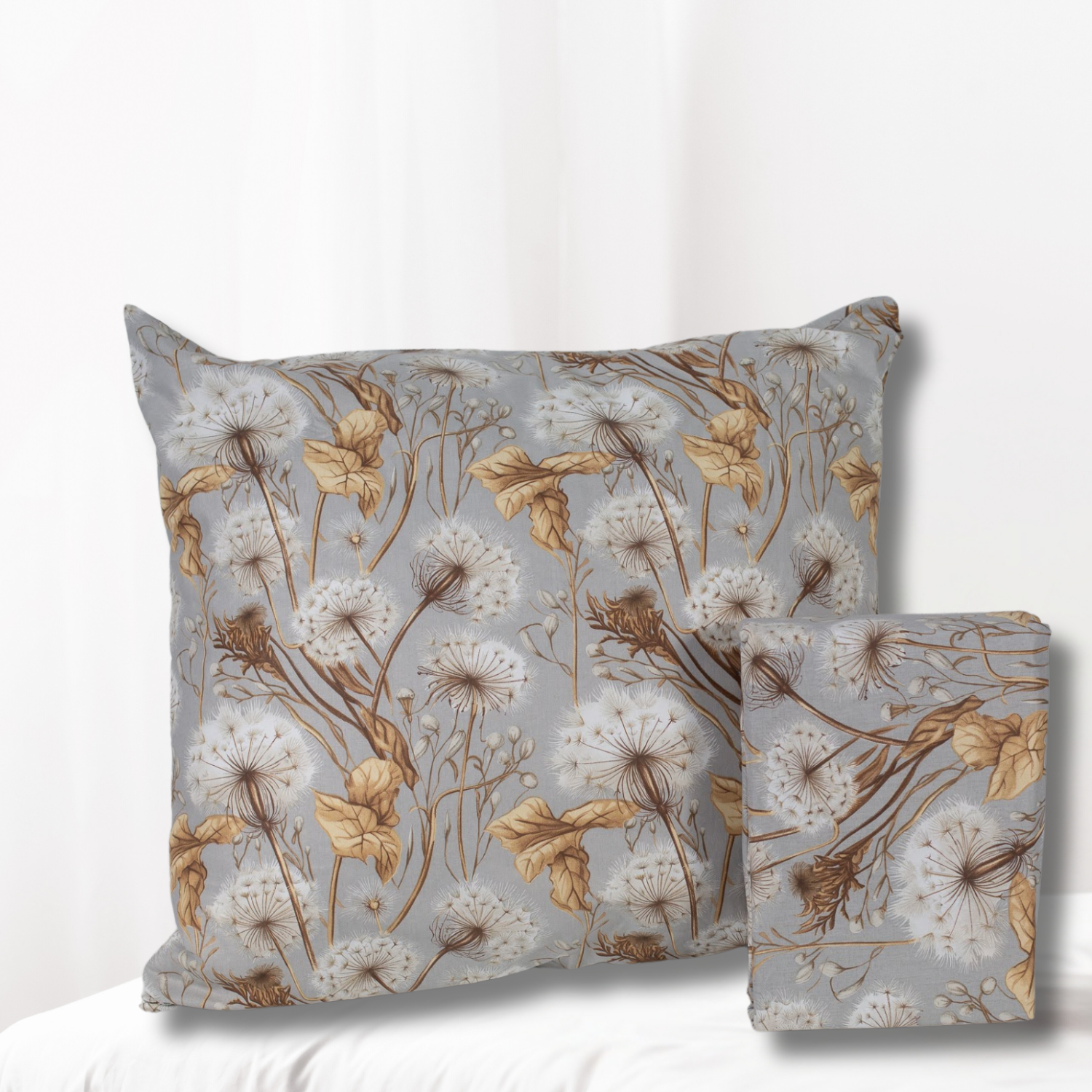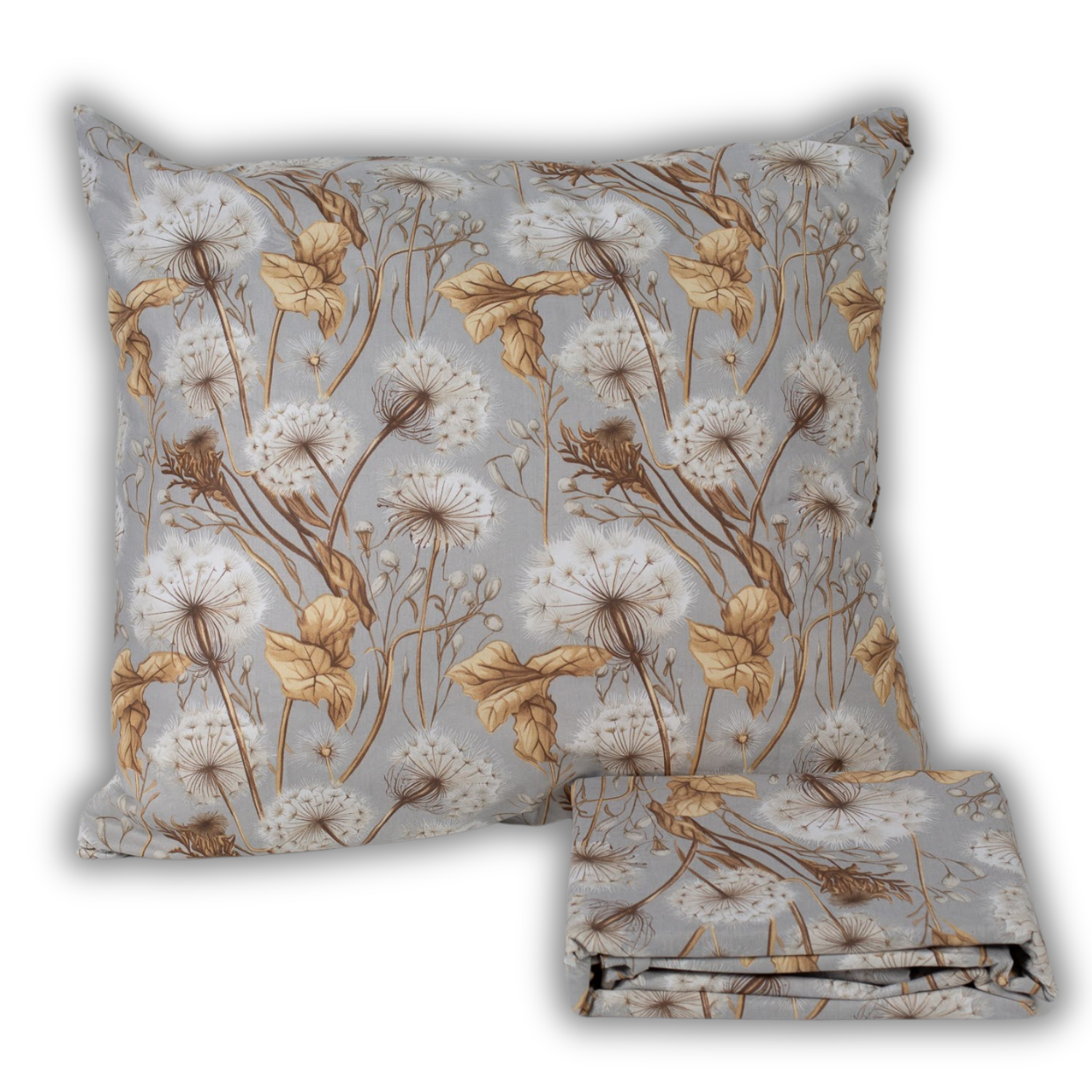 Subtelny wzór i naturalna kolorystyka wprowadzą do Twojej sypialni harmonię i spokój. Delikatne dmuchawce i liście tworzą botaniczną kompozycję, utrzymaną w ciepłych odcieniach brązu i beżu z kremowymi akcentami. Taki design idealnie pasuje do wnętrz w stylu naturalnym, skandynawskim lub klasycznym.